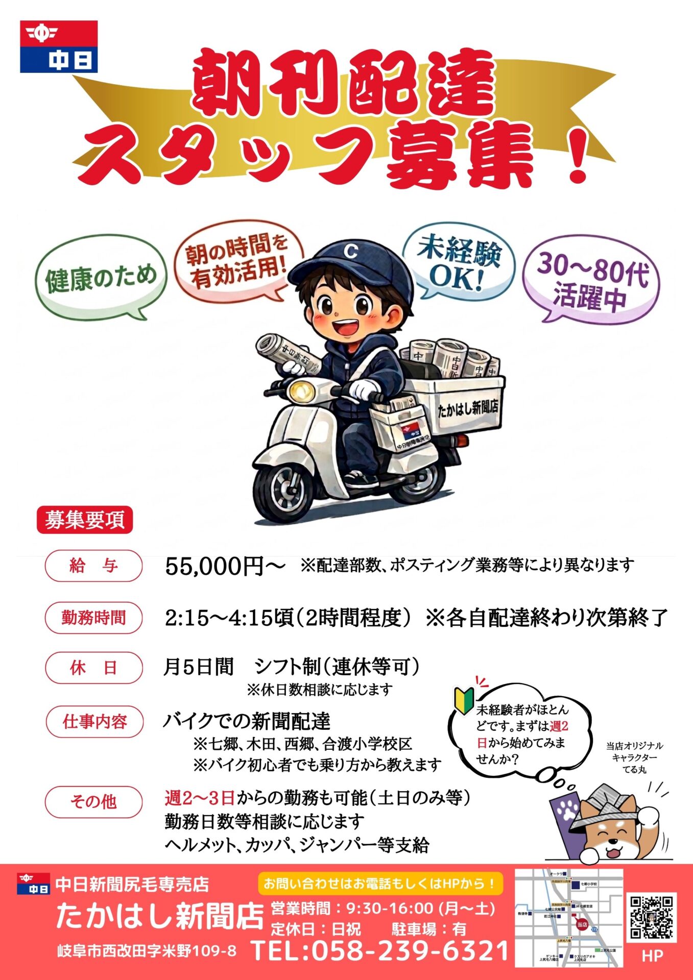 ~中日新聞 尻毛専売店 たかはし新聞店で一緒に働きませんか?~